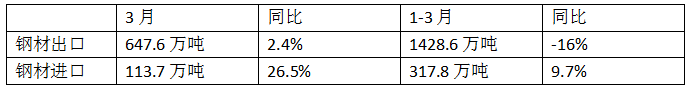 從進(jìn)出口來看,1-3月出口下滑明顯,同比下降16%,3月鋼材進(jìn)口增幅遠(yuǎn)大于出口變動。海外疫情將持續(xù)影響國內(nèi)鋼材出口量,同時,在國際鋼價下行壓力下,低價進(jìn)口空間增加。國內(nèi)供應(yīng)壓力會繼續(xù)加大。