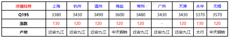 全國9個主要市場Q195平均價格3464元/噸,較上個交易日上調(diào)20元/噸。